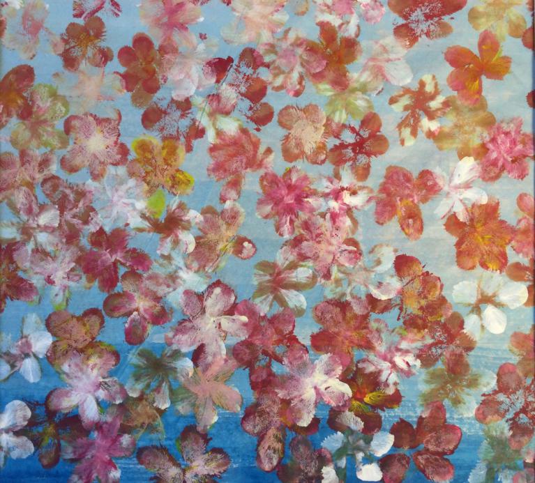 Depuis cette découverte, j'ai approfondi différentes techniques qui m'ont permis de créer d'une façon ludique des toiles très colorées, décoratives , abstraites,ou fleuries ,voir symboliques.
